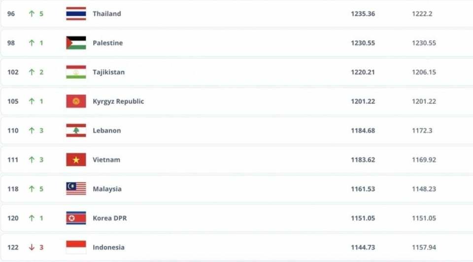 马来西亚队世界排名超越印尼队,重回东南亚第3